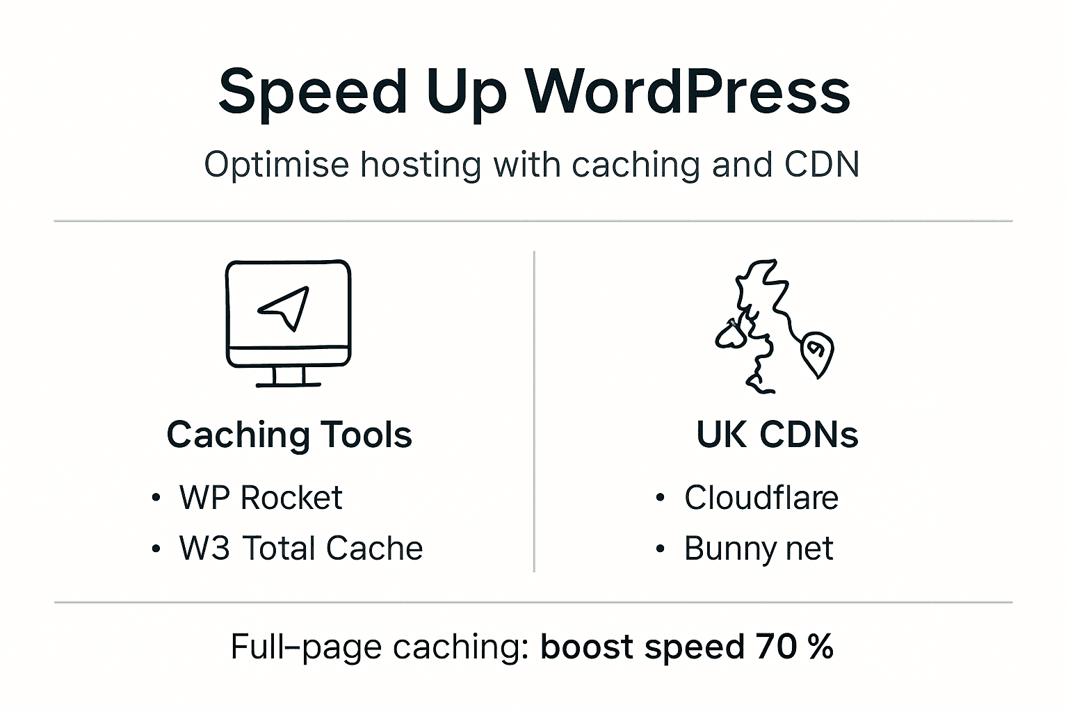 | Full-page caching and CDN | Cuts load times by 50-70% when properly configured with UK nodes. |